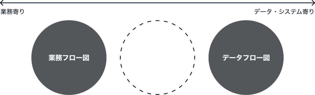 一方、右側は、データフロー図のようなデータ・システム寄りの整理です。