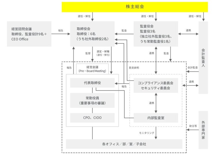 The Company has established a Management Committee attended by full-time directors, full-time corporate auditors, CIOO, and CPO. The Management Committee is operated to ensure the smooth operation of the Company's business operations by deliberating matters to be resolved by the Board of Directors in advance, sharing business issues, and examining solutions to them.