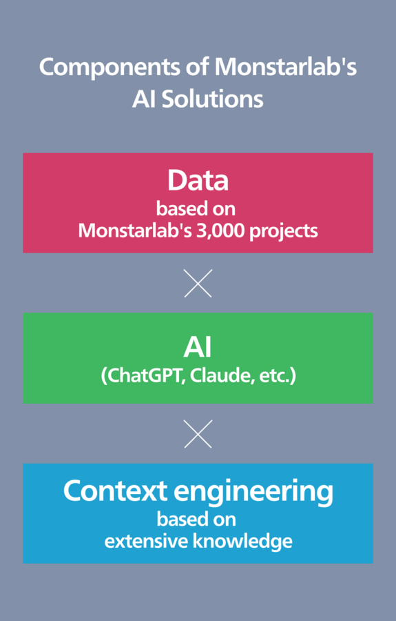 Our AI Solutions are powered by the critical trifecta of Data, AI, and Context Engineering. The true quality of any solution hinges on the volume of accumulated data and the deep industry context provided by our engineers. Monstarlab ensures superior quality by leveraging Data from over 3,000 successful projects and Context Engineering built on extensive, proven expertise.