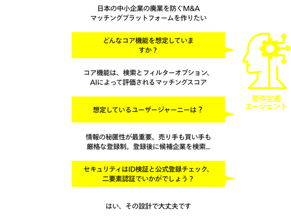 要件定義エージェントと対話を数分間するだけで