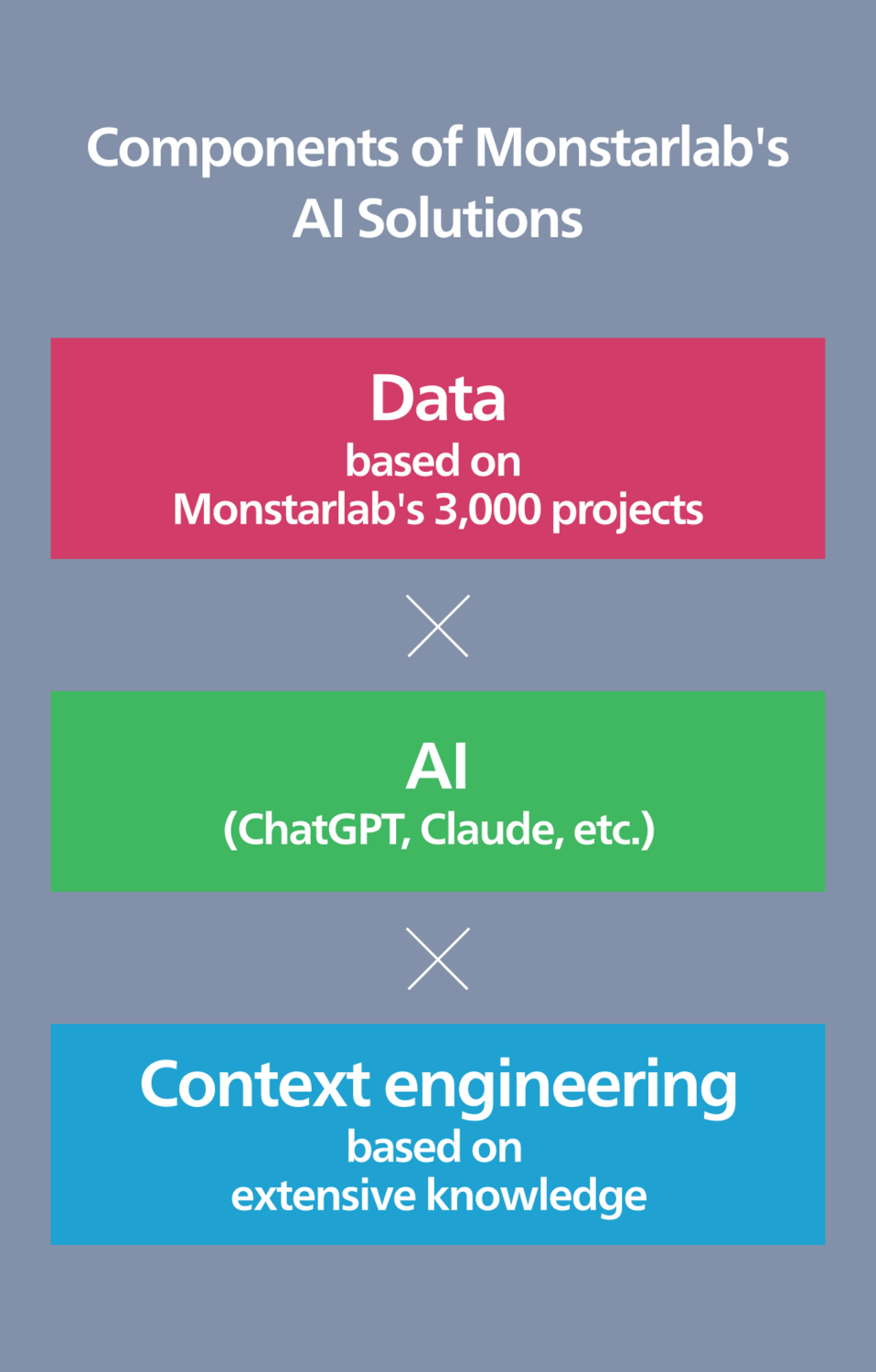Our AI Solutions are powered by the critical trifecta of Data, AI, and Context Engineering. The true quality of any solution hinges on the volume of accumulated data and the deep industry context provided by our engineers. Monstarlab ensures superior quality by leveraging Data from over 3,000 successful projects and Context Engineering built on extensive, proven expertise.