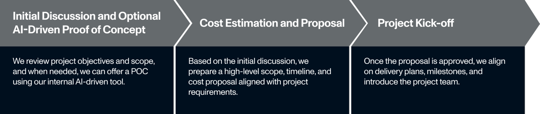 Once the proposal is approved, we align on delivery plans, milestones, and introduce the project team.