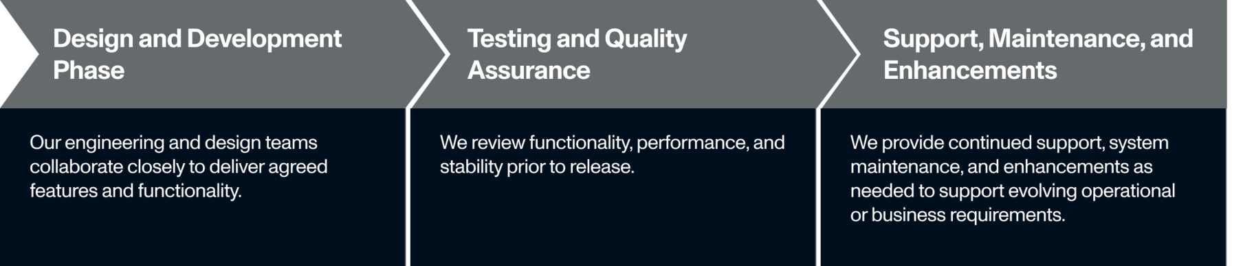 We provide continued support, system maintenance, and enhancements as needed to support evolving operational or business requirements.