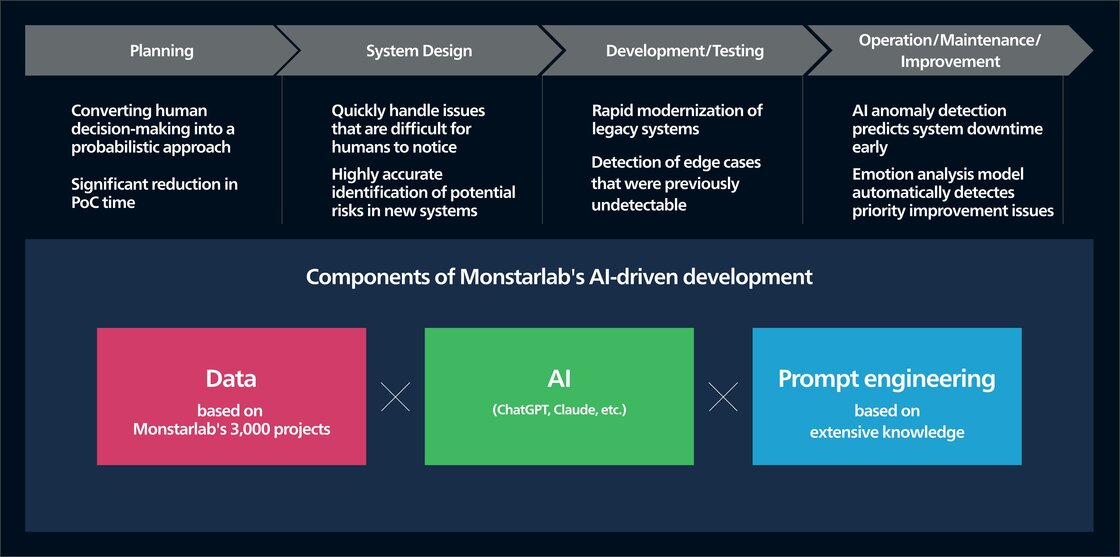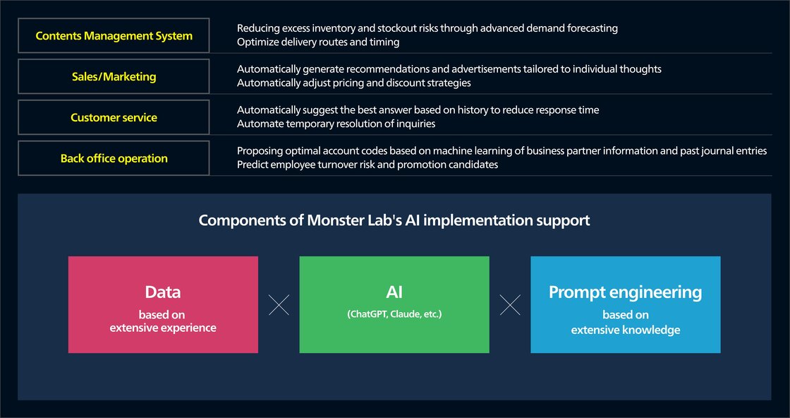 Monstarlab supports your optimal AI implementation through a powerful combination of data, AI, and prompt engineering. Our experts, with extensive knowledge across diverse business domains, will partner with you to craft a unique AI utilization story tailored specifically for your company.
